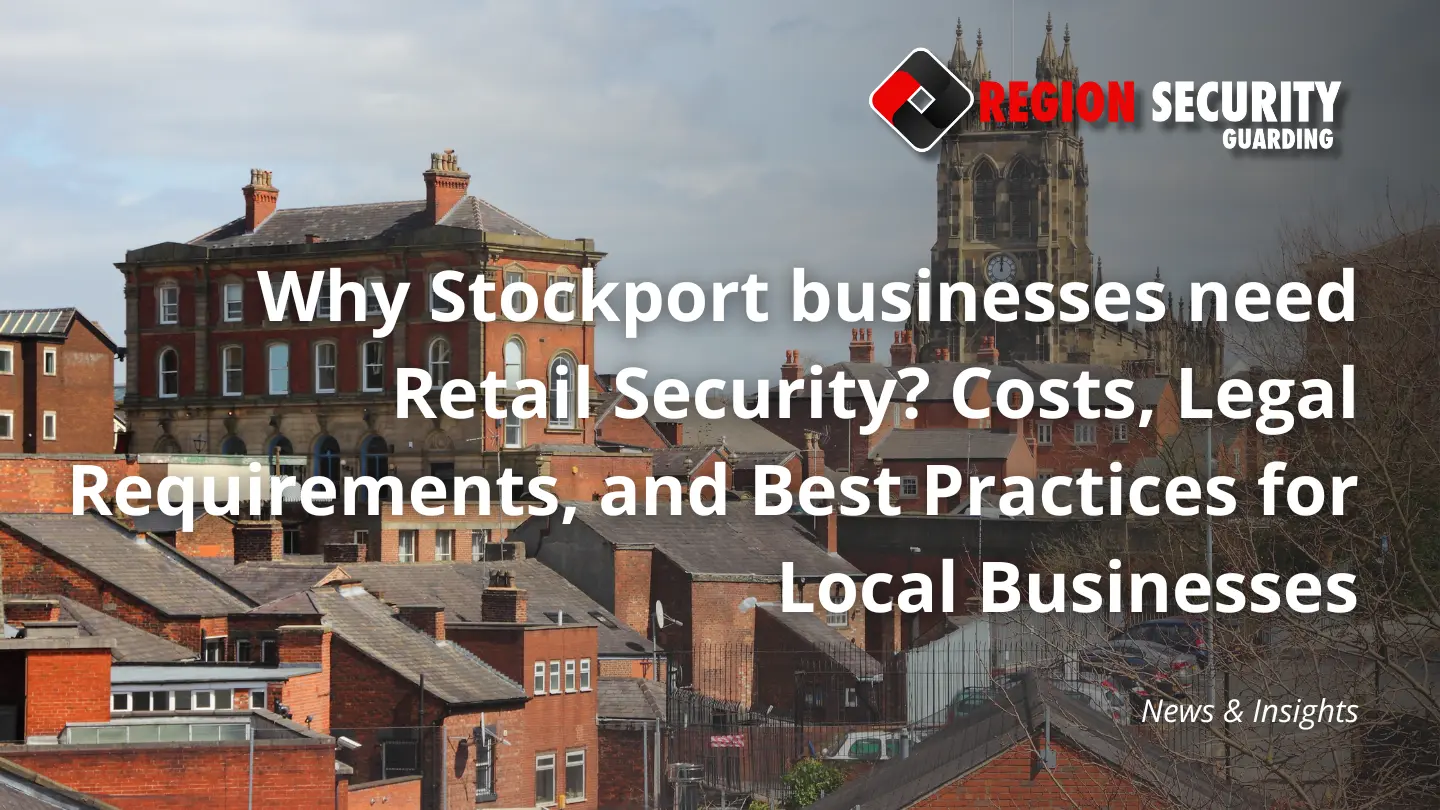 Retail crime risks in Stockport are rising in ways that reflect national trends, but local conditions shape how that risk appears. This article exists to help decision-makers understand when on-site retail security is justified, how legal and insurance expectations apply, what realistic costs look like, and how to plan security that fits Stockport retail environments.